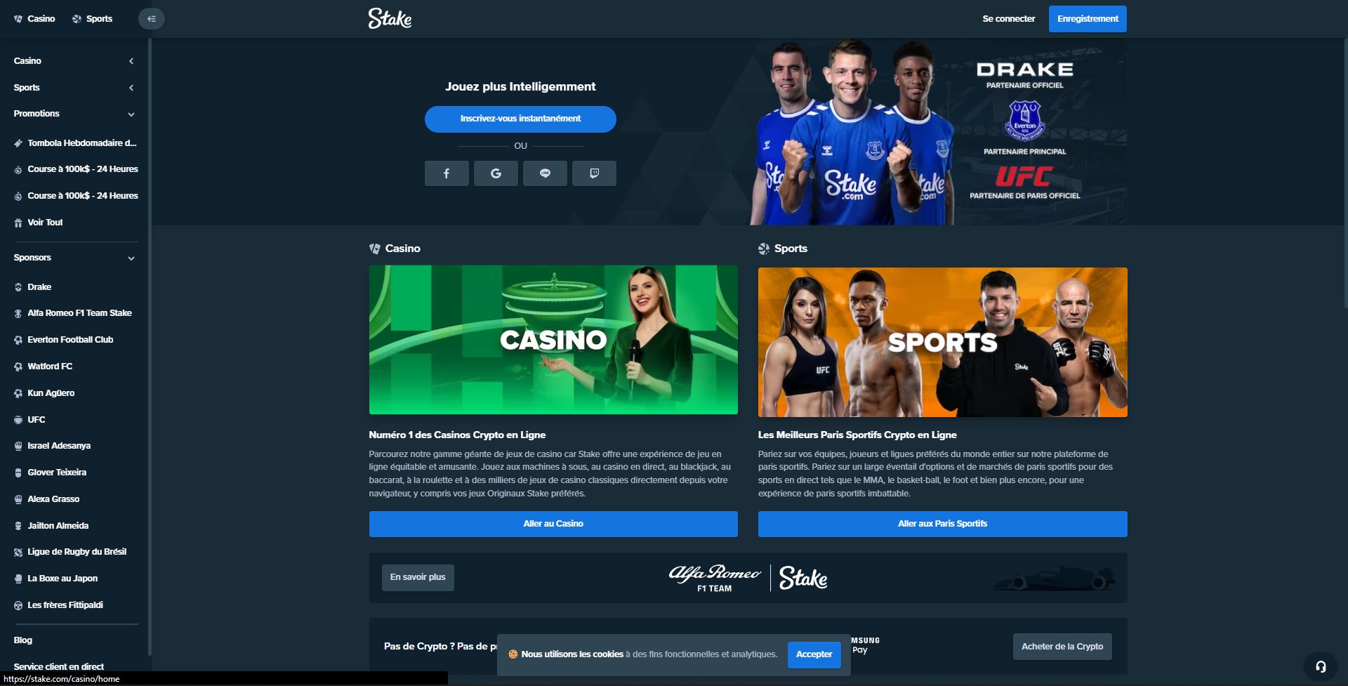 The platform Stake offers a welcome package: the user creates only one account but is entitled to the two services offered by the platform (the casino and the paris). However, the bonus can only be used for the part of the sport bets.