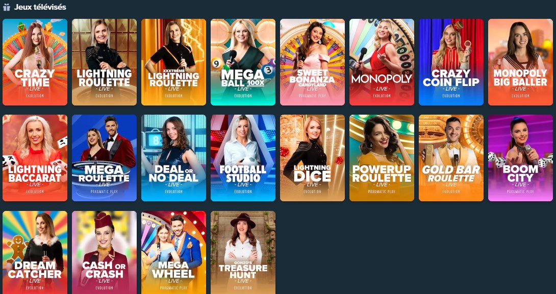 The famous developers Pragmatic Plac, Playtech and Evolution Gaming have designed the Live Stake Casino. The games are therefore live with real dealers in the real casinos or studios set up for this purpose. The atmosphere of the casinos Classical is the name of the game because everything is done to make you forget that you are behind your screen. All the games classics are offered such as the pokerthe baccaratthe blackjack but also the Monopolythe craps, etc. Stake Canada also offers game shows!